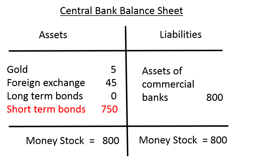 The fact that the asset side of the balance sheet went from $800b to $2,000b is referred to as quantitative easing. The fact that the fraction of liabilities held as short term treasury securities went from 94% (750/800) to 38% (750/2000) is referred to as qualitative easing.